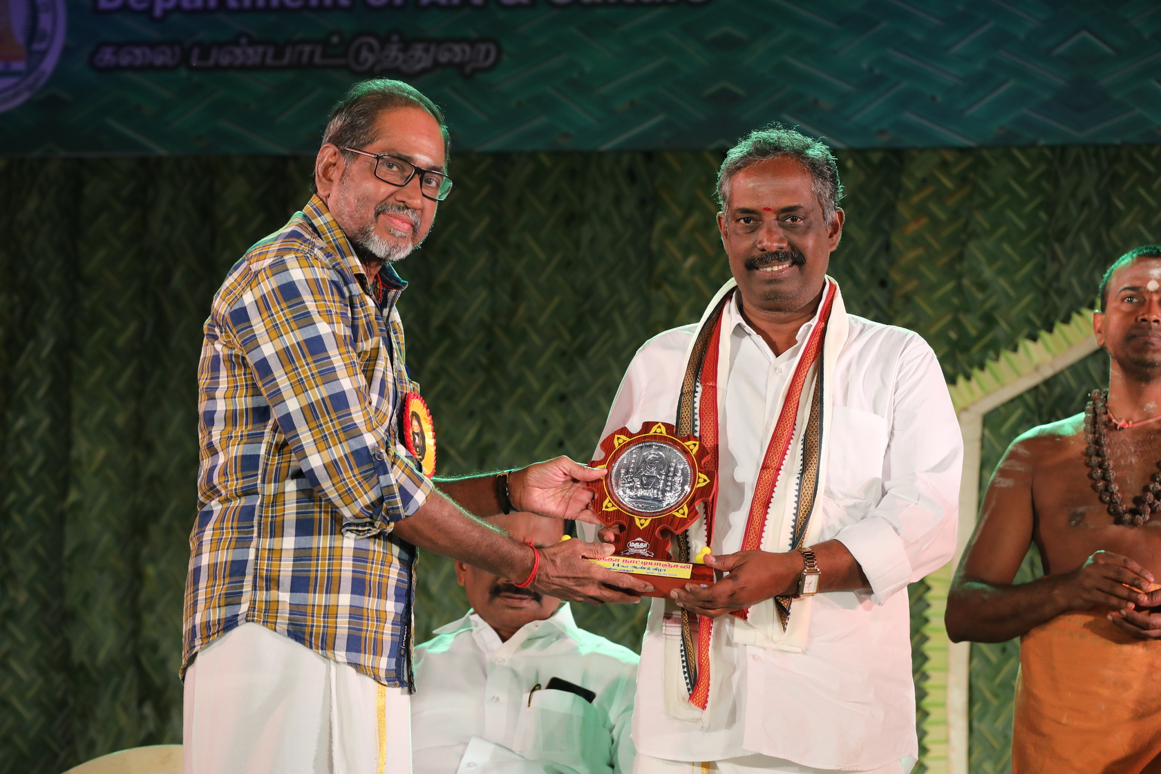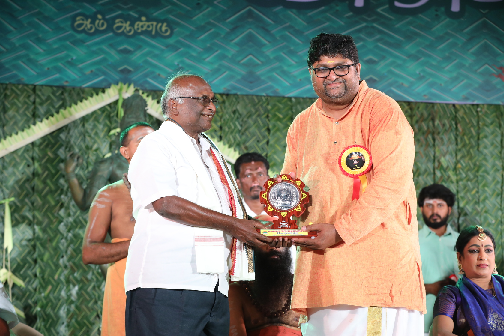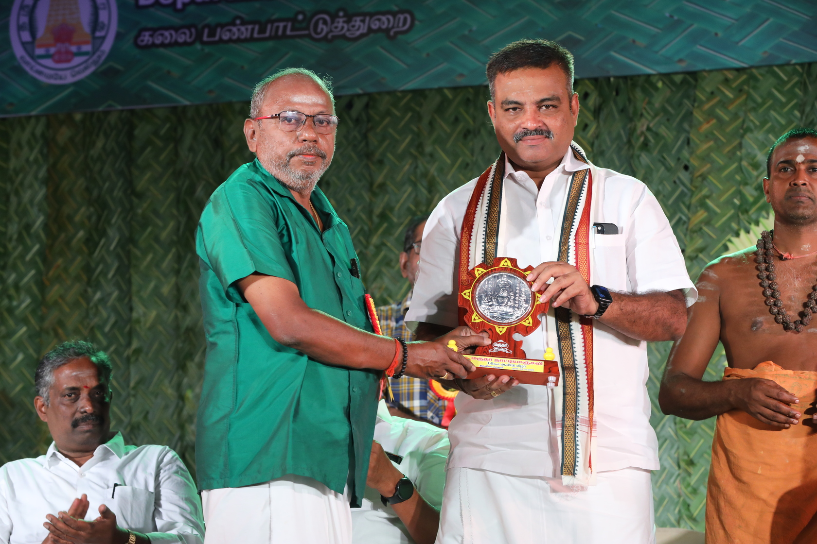 Mr Moorthy founder trustee Marudha Natyanjali honering Mr Baranidaran sec Mayura Natyanjali